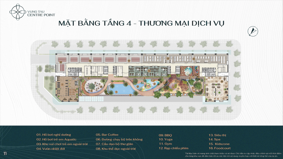 Vung Tau Centre Point không gian sống được may đo hoàn hảo theo phong cách nghỉ dưỡng tại gia phục vụ các chủ nhân xứng tầm. Cư dân tại Vung Tau Centre Point được tận hưởng cuộc sống thượng lưu đúng nghĩa với hơn 30 tiện ích tiện nghi ngay tại nhà: Hồ bơi nghỉ dưỡng, Hồ bơi trẻ em Aquatic, BBQ, cầu dạo bộ thư giãn, đường chạy bộ trên không, Bar Coffee, Vườn nhiệt đới, Sân chơi chơi trẻ em, Co-working space, Phòng Gym, Khu tập Yoga & Thiền, rạp chiếu phim… cùng hệ thống Shophouse cao cấp.